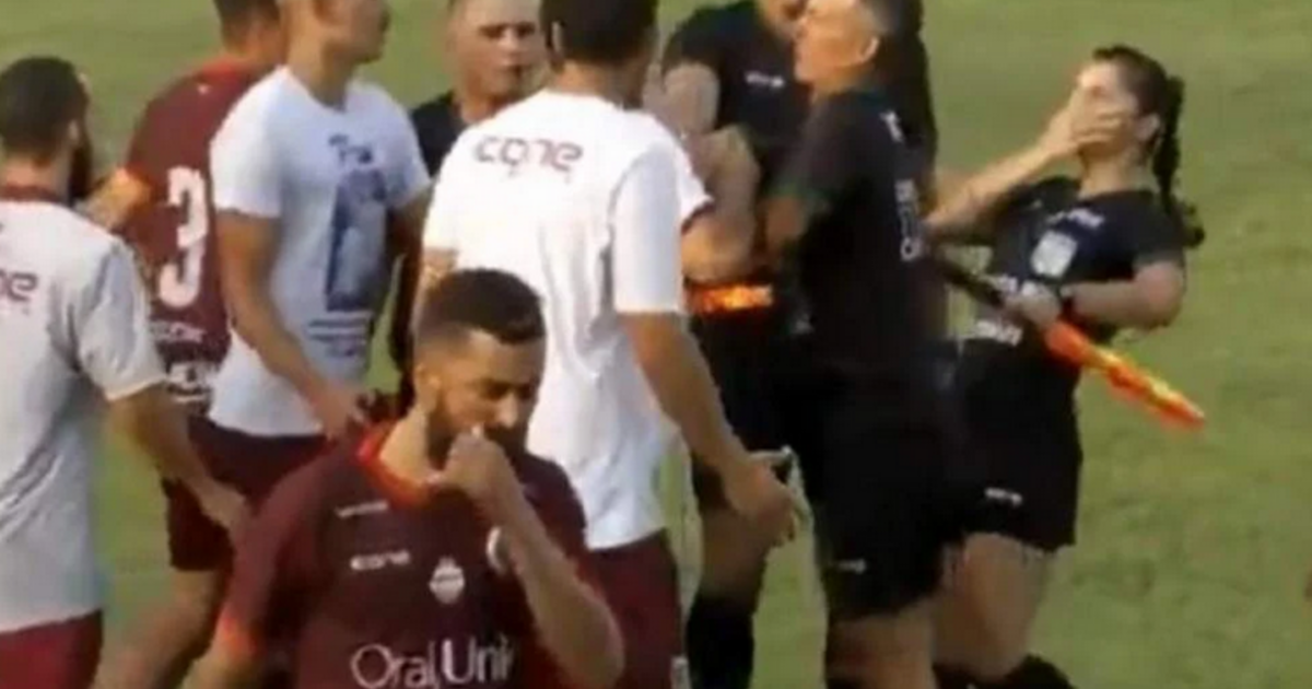 Rafael Soriano, técnico da Desportivo Ferroviária, intento dar un cabezazo a la juez asistente Marcielly Netto, integrante del equipo de arbitraje, por el campeonato Capixaba. La dirigencia del club despidió de inmediato al entrenador agresor. pic.twitter.com/BazBp5nHE5