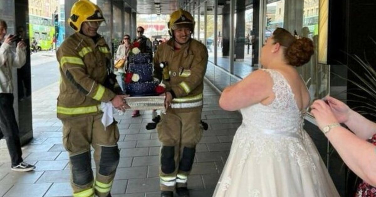 Παράνυμφος του ζευγαριού δημοσίευσε μια φωτογραφία των πυροσβεστών με την γαμήλια τούρτα.