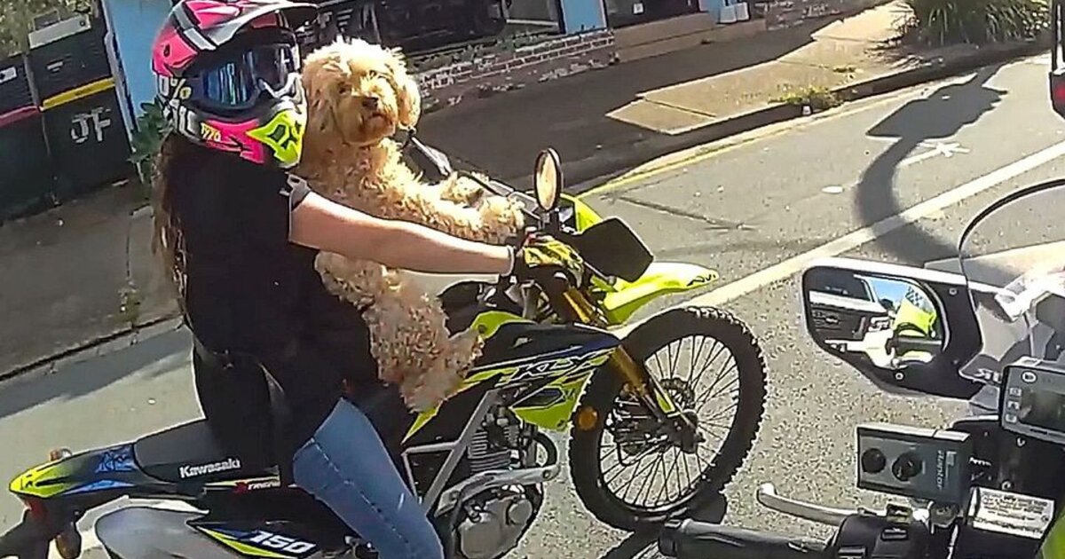 Προφανώς είναι παράνομο το να κυκλοφορείς με μοτοσικλέτα και τον σκύλο σου προσδεμένο στο στήθος σου, όπως εξηγεί αστυνομικός σε νεαρή γυναίκα στο Κουίνσλαντ της Αυστραλίας, στις 17 Μαΐου.