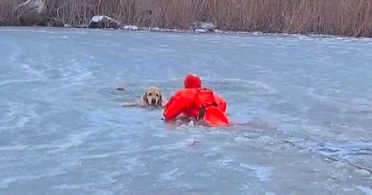 Πυροσβέστης σέρνεται στον πάγο για να σώσει σκύλο σε παγωμένη λίμνη