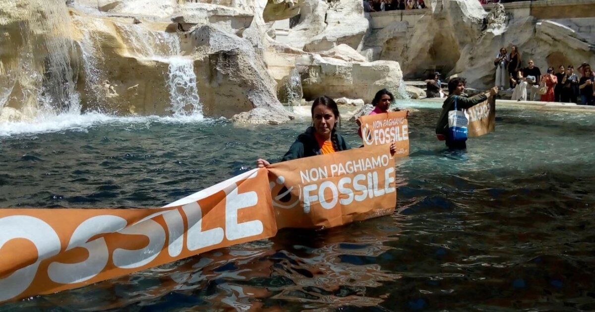 Επτά ακτιβιστές για το κλίμα μπήκαν την Κυριακή μέσα στο διάσημο συντριβάνι της Φοντάνα ντι Τρέβι στη Ρώμη και έριξαν κάρβουνο που έκανε το νερό μαύρο.