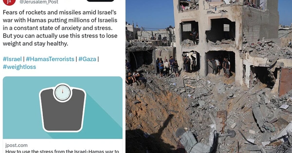 «Οι φόβοι για ρουκέτες και πυραύλους εν μέσω του πολέμου του Ισραήλ με τη Χαμάς βάζουν εκατομμύρια Ισραηλινούς σε μια συνεχή κατάσταση άγχους και στρες. Αλλά μπορείτε πραγματικά να χρησιμοποιήσετε αυτό το άγχος για να χάσετε βάρος και να παραμείνετε υγιείς», αναφερόταν στο σχόλιο στην ανάρτηση του άρθρου στο Χ, πρώην Twitter.
