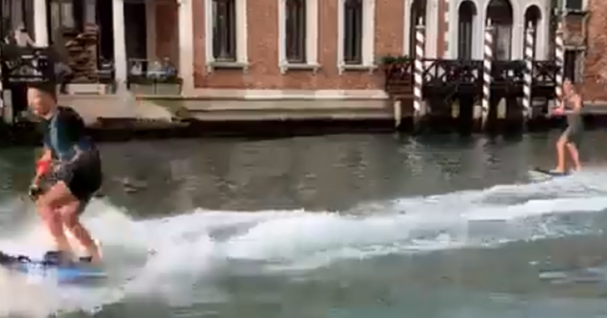 Σε πλάνα που κατέγραψαν διάφοροι ντόπιοι, απαθανατίστηκαν να αποφεύγουν ένα βαπορέτο (θαλάσσιο λεωφορείο) και ένα ταξί κάτω από τη γέφυρα του Ριάλτο και δίπλα από τη Σάντα Μαρία ντέλα Σαλούτε, ένα από τα εμβληματικά αξιοθέατα της πόλης. Καθώς περνούσαν κάτω από τη γέφυρα Ακαντέμια, ένας από τους σέρφερ έπεσε από τη σανίδα του αλλά φρόντισε να κρατήσει το κινητό του έξω από το νερό, βιντεοσκοπώντας τον φίλο του.