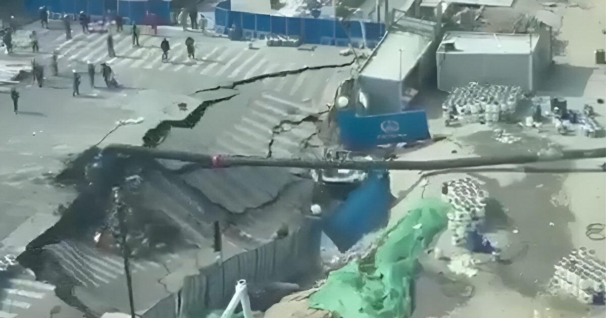 Σε βίντεο από κάμερα ασφαλείας φαίνεται καθαρά η στιγμή που μεγάλο κομμάτι του οδοστρώματος καταρρέει, με αποτέλεσμα να εξαφανιστεί σε δευτερόλεπτα ό,τι υπήρχε στο σημείο.