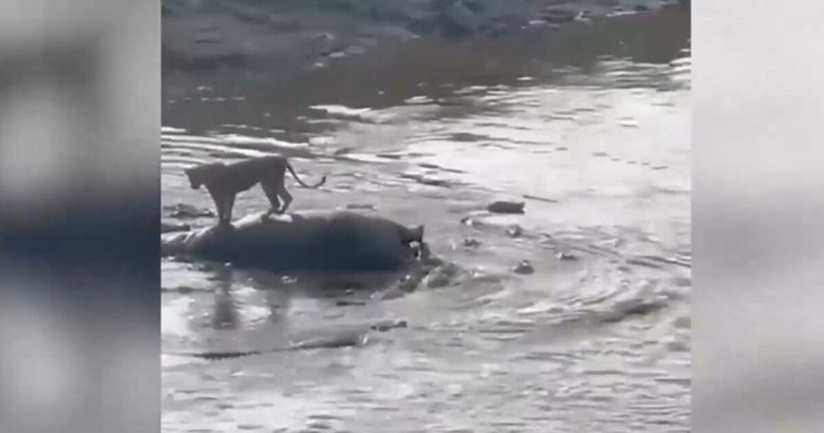 Στην Κένυα το γεύμα ενός λιονταριού διακόπηκε απότομα, όταν το κουφάρι του ιπποπόταμου πάνω στο οποίο γευμάτιζε, περικυκλώθηκε από δεκάδες πεινασμένους κροκόδειλους.