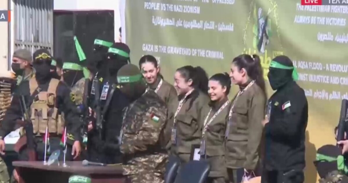 Προηγουμένως, οι τέσσερις γυναίκες ανέβηκαν σε μια σκηνή που είχε στήσει η Χαμάς ήταν ντυμένες με στρατιωτικές στολές και κρατούσαν «σακούλες δώρων» που τους έδωσε η ισλαμιστική οργάνωση.