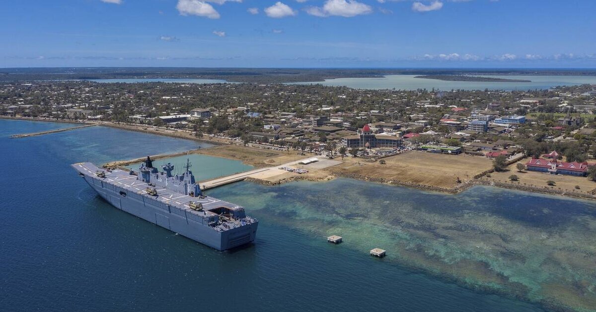 Το πλοίο HMAS Adelaide του αυστραλιανού Πολεμικού Ναυτικού έδεσε την προηγούμενη εβδομάδα στη Νουκουαλόφα για να εκφορτώσει τη βοήθεια που μετέφερε παρά το γεγονός ότι περίπου 20 μέλη του πληρώματός του είχαν βρεθεί θετικά στην covid-19.