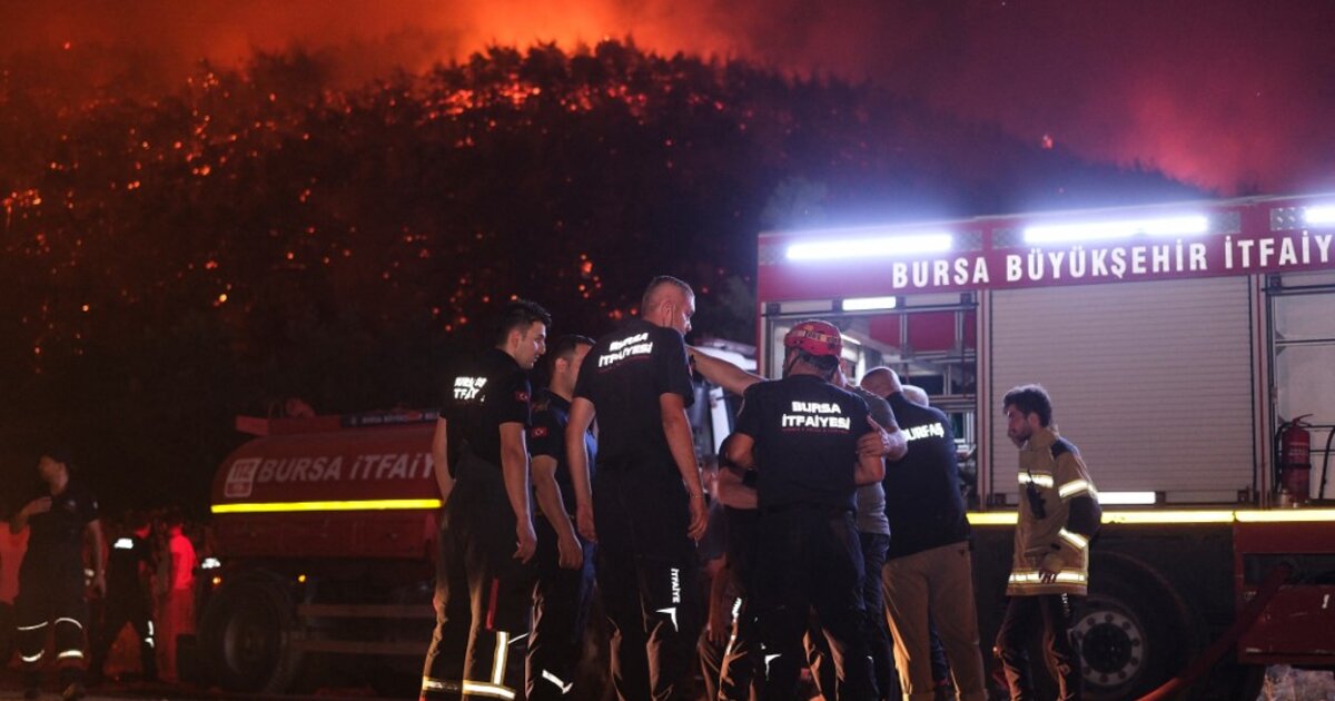 Κατά τη διάρκεια της νύχτας, οι φωτιές στα δασωμένα βουνά που περιβάλλουν την Προύσα, στη βορειοδυτική Τουρκία, εξαπλώθηκαν ραγδαία, βάφοντας τον νυχτερινό ουρανό στα ανατολικά προάστια της πόλης με κόκκινες αποχρώσεις. Δεκάδες σοβαρές πυρκαγιές πλήττουν τη χώρα καθημερινά από τα τέλη Ιουνίου, με την κυβέρνηση να κηρύσσει την Παρασκευή τις δυτικές επαρχίες της Σμύρνης και του Μπιλέτζικ σε κατάσταση έκτακτης ανάγκης.