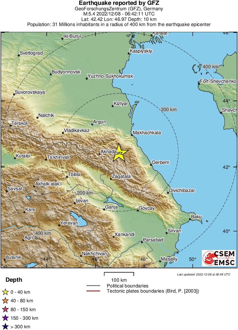 Σεισμός μεγέθους 5,5 Ρίχτερ σημειώθηκε στην Περιοχή του Καυκάσου, στη Ρωσία, σύμφωνα με το Ευρωμεσογειακό Σεισμολογικό Κέντρο (EMSC).