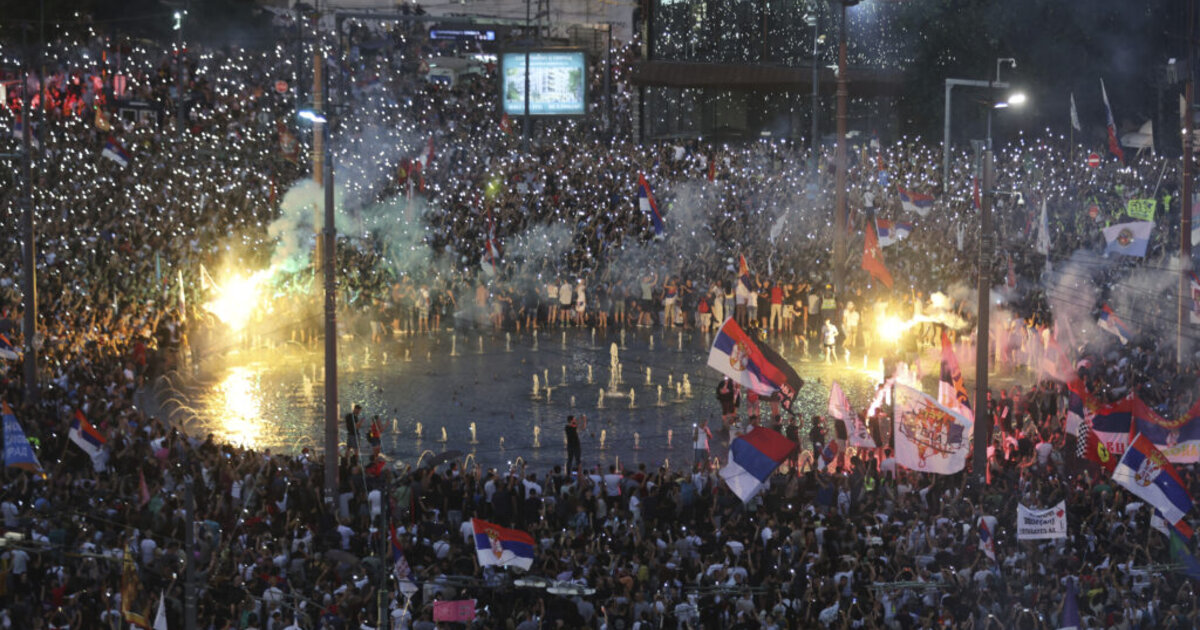 Δεκάδες χιλιάδες πολίτες συγκεντρώθηκαν στο κέντρο του Βελιγραδίου για να στηρίξουν το αίτημα των φοιτητών για πρόωρες βουλευτικές εκλογές.