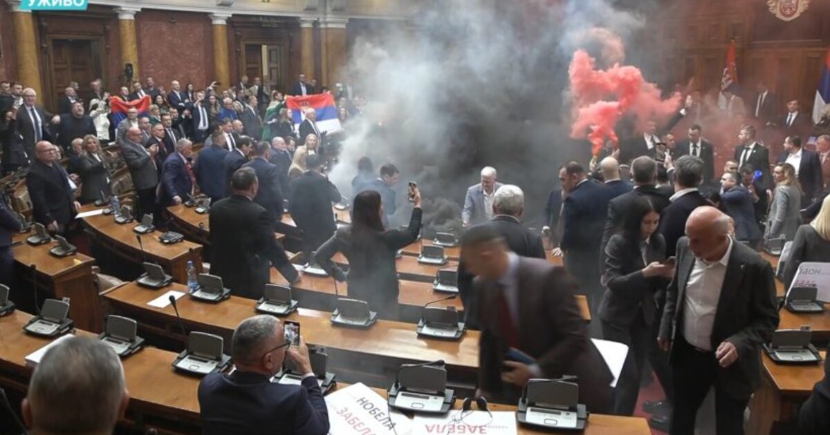 Εικόνες και βίντεο με μέλη της αντιπολίτευσης να πετούν καπνογόνα, κάνουν εδώ και λίγες ώρες τον γύρο του διαδικτύου. Σύμφωνα με την ιστοσελίδα της Σερβίας blic, η συζήτηση για την Τριτοβάθμια εκπαίδευση που ήταν προγραμματισμένη για σήμερα Τρίτη (4.3.2025) ξεκίνησε μέσα σε τεταμένο κλίμα και γρήγορα βγήκε εκτός ελέγχου, όταν κάποιος πέταξε μια φωτοβολίδα μέσα στην αίθουσα.