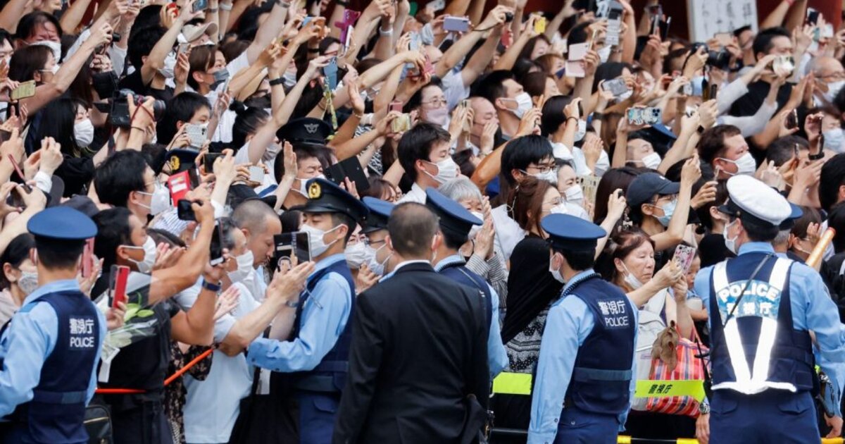 Πλήθος πολιτών είχε κατακλύσει τα πεζοδρόμια, ενώ είχε αναπτυχθεί ισχυρή αστυνομική παρουσία καθώς πλησίαζε η νεκροφόρα με τη σορό του πρώην πρωθυπουργού της Ιαπωνίας που είχε ξεκινήσει από έναν ναό του κεντρικού Τόκιο. Ελικόπτερα υπερίπταντο πάνω από το σημείο που πραγματοποιήθηκε η τελετή, η οποία μεταδόθηκε ζωντανά από το τηλεοπτικό δίκτυο NHK. Η δολοφονία του συντάραξε τη χώρα.