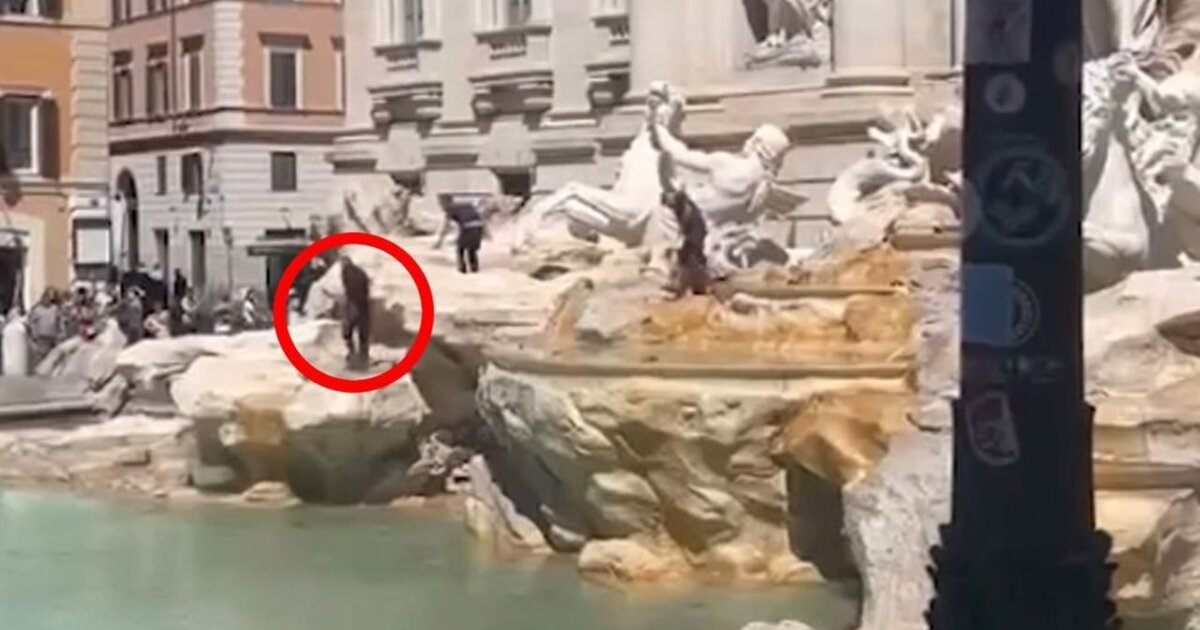 Ποιος ξέρει τι περνούσε (ή ...δεν περνούσε) από το μυαλό τουρίστα από το Κόσοβο που αποφάσισε να σκαρφαλώσει στο σύμπλεγμα αγαλμάτων της θρυλικής Φοντάνα ντι Τρέβι στην Ρώμη, Ιταλία, στα μέσα Ιουνίου.