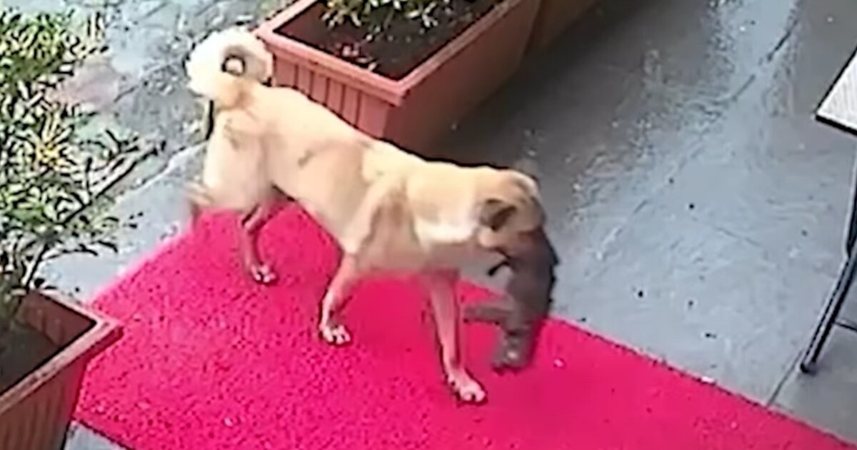 Συγκινεί η πρωτοβουλία της σκυλίτσας για να σώσει το κουτάβι της.