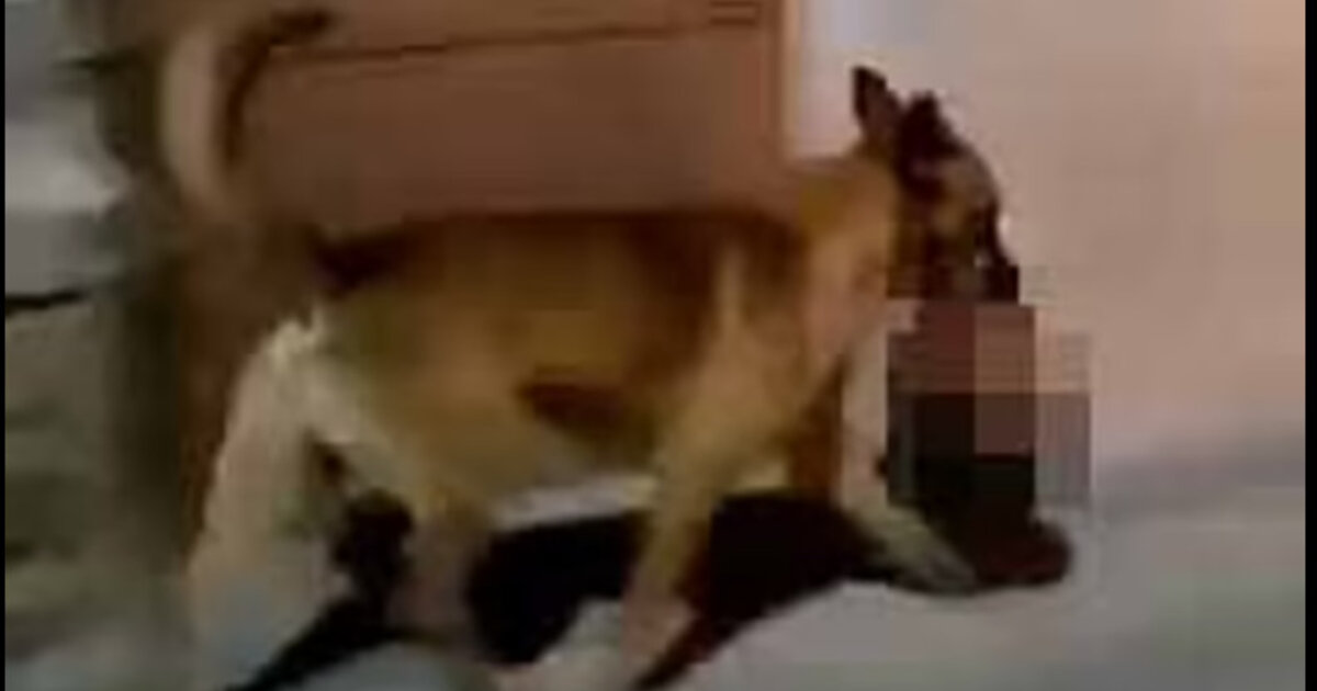 Ένα βίντεομ που αναρτήθηκε στα μέσα κοινωνικής δικτύωσης, δείχνει τον σκύλο να τρέχει σε έναν σκοτεινό δρόμο, κρατώντας το κεφάλι από τον λαιμό στα σαγόνια του, προφανώς με σκοπό να το μεταφέρει σε ασφαλές μέρος για να το φάει.