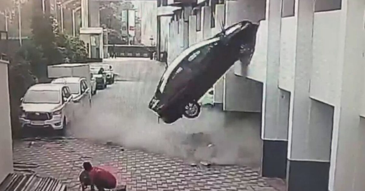Έκπληκτοι όσοι βρίσκονταν έξω από πάρκινγκ στην Μαχαράστρα, Ινδία, στις 12 Ιανουαρίου, είδαν αυτοκίνητο να βγαίνει από το πάρκινγκ λίγο... ανορθόδοξα!