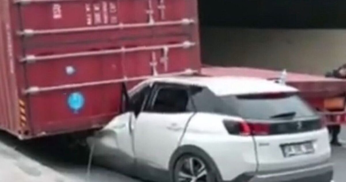 Άγιο είχε ο Μπράιαντ Ντάνστον, ο οποίος ενώ οδηγούσε στην Κωνσταντινούπολη είδε ένα κοντέινερ να πέφτει πάνω στο αυτοκίνητό του και να διαλύει το μπροστινό μέρος.