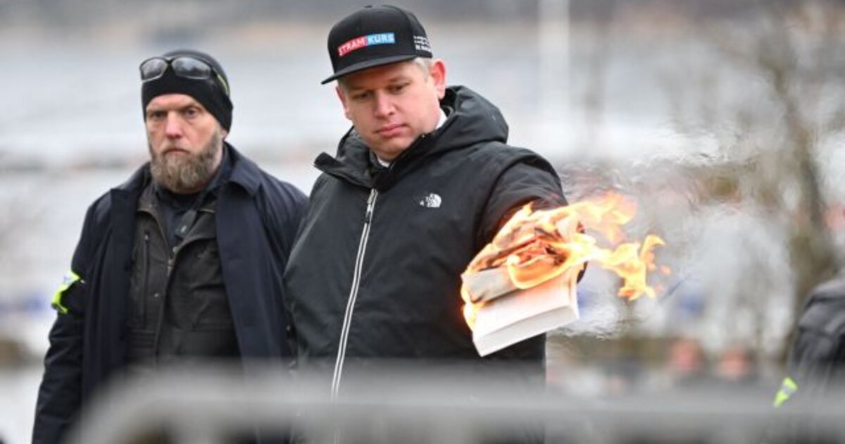 Υπό αυστηρά μέτρα ασφαλείας και πίσω από μεταλλικά διαχωριστικά, ο Ράσμους Παλουντάν, ο σουηδοδανός εξτρεμιστής ηγέτης του ακροδεξιού κόμματος Stram Kurs (Hard Line), αντιισλαμιστής και πολέμιος της μετανάστευσης, όπως είχε ανακοινώσει, έκαψε ένα αντίγραφο του Κορανίου, διαπίστωσε δημοσιογράφος του Γαλλικού Πρακτορείου.