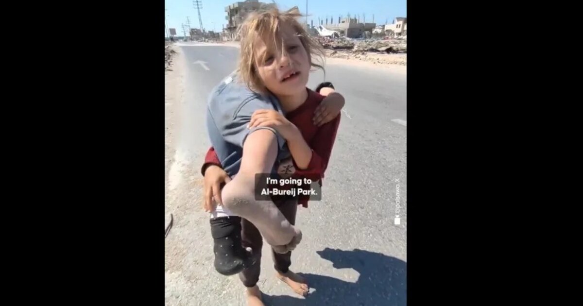 Ραγίζει καρδιές το βίντεο, που αποτυπώνει πτυχές της φρίκης στη Γάζα, το οποίο δείχνει κοριτσάκι να να περπατά ξυπόλητο στην άσφαλτο, κουβαλώντας στο ώμο της τη μικρότερη αδελφή της.
