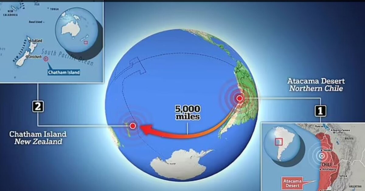 Όπως αναφέρει η Daily Mail, ερευνητές από το Πανεπιστήμιο του Σαουθάμπτον υποστηρίζουν ότι ο σεισμός ήταν της τάξης των 9,5 ρίχτερ - ίδιας κλίμακας με τον μεγαλύτερο σεισμό που έχει καταγραφεί στην ιστορία - και προκάλεσε ένα τεράστιο τσουνάμι που ταξίδεψε περισσότερα από 5.000 μίλια έως τη Νέα Ζηλανδία.