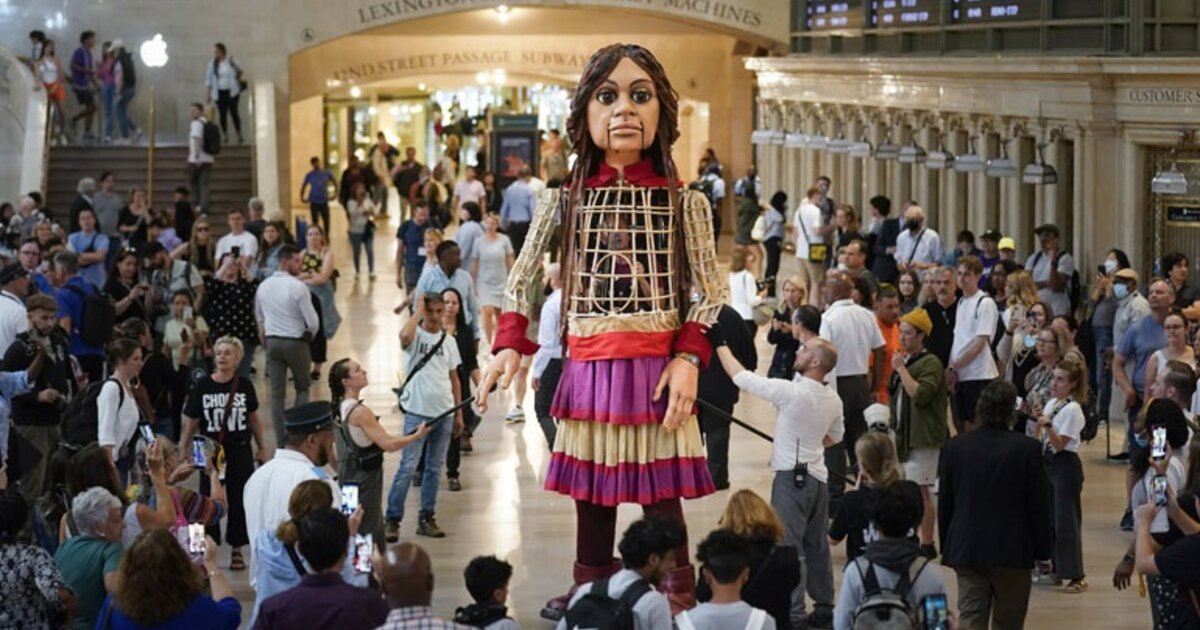 Η μαριονέτα Αμάλ, ύψους 3,6 μέτρων, της οποίας το όνομα σημαίνει «ελπίδα» στα αραβικά, ξεκίνησε το ταξίδι της από τα σύνορα Συρίας-Τουρκίας τον Ιούλιο του 2021, συνάντησε ουκρανούς πρόσφυγες ανά την Ευρώπη και τις επόμενες ημέρες θα πραγματοποιήσει περιοδεία στη Νέα Υόρκη.
