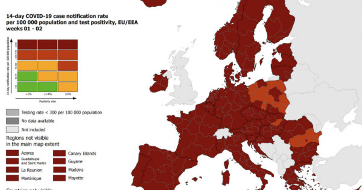 Επιδείνωση της επιδημιολογικής κατάστασης σε σχέση με την COVID-19 στην συντριπτική πλειοψηφία των περιοχών και των περιφερειών της Ευρωπαϊκής Ένωσης και του Ευρωπαϊκού Οικονομικού Χώρου (ΕΟΧ) καταγράφεται και αυτή την εβδομάδα στον χάρτη του Ευρωπαϊκού Κέντρου Πρόληψης και Ελέγχου Νόσων (ECDC).