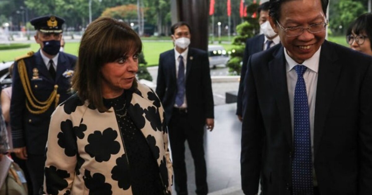 H Πρόεδρος της Δημοκρατίας Κατερίνα Σακελλαροπούλου, στο πλαίσιο της επίσημης επίσκεψης της στο Βιετνάμ μετέβη στη Χο Τσι Μιν, όπου την υποδέχθηκε στο Παλάτι της Ανεξαρτησίας o Πρόεδρος της Λαϊκής Επιτροπής της πόλης, Phan Văn Mãi.
