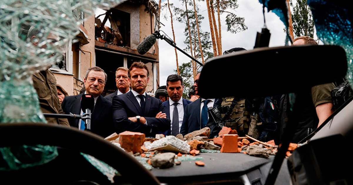 Ο Καγκελάριος της Γερμανίας Όλαφ Σολτς, ο Γάλλος πρόεδρος, Εμανουέλ Μακρόν και ο Ιταλός πρωθυπουργός Μάριο Ντράγκι, επισκέφθηκαν το μισοκατεστραμμένο προάστειο του Κιέβου σήμερα το πρωί, όπως αναφέρει η εφημερίδα «Bild».