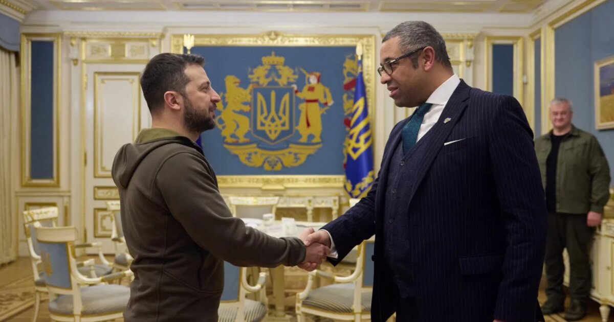 Ο Βρετανός υπουργός Εξωτερικών Τζέιμς Κλέβερλι επισκέφθηκε σήμερα την Ουκρανία όπου συνάντησε τον πρόεδρο Βολοντίμιρ Ζελένσκι και ανακοίνωσε νέα βοήθεια προς τους Ουκρανούς "στον αγώνα τους".