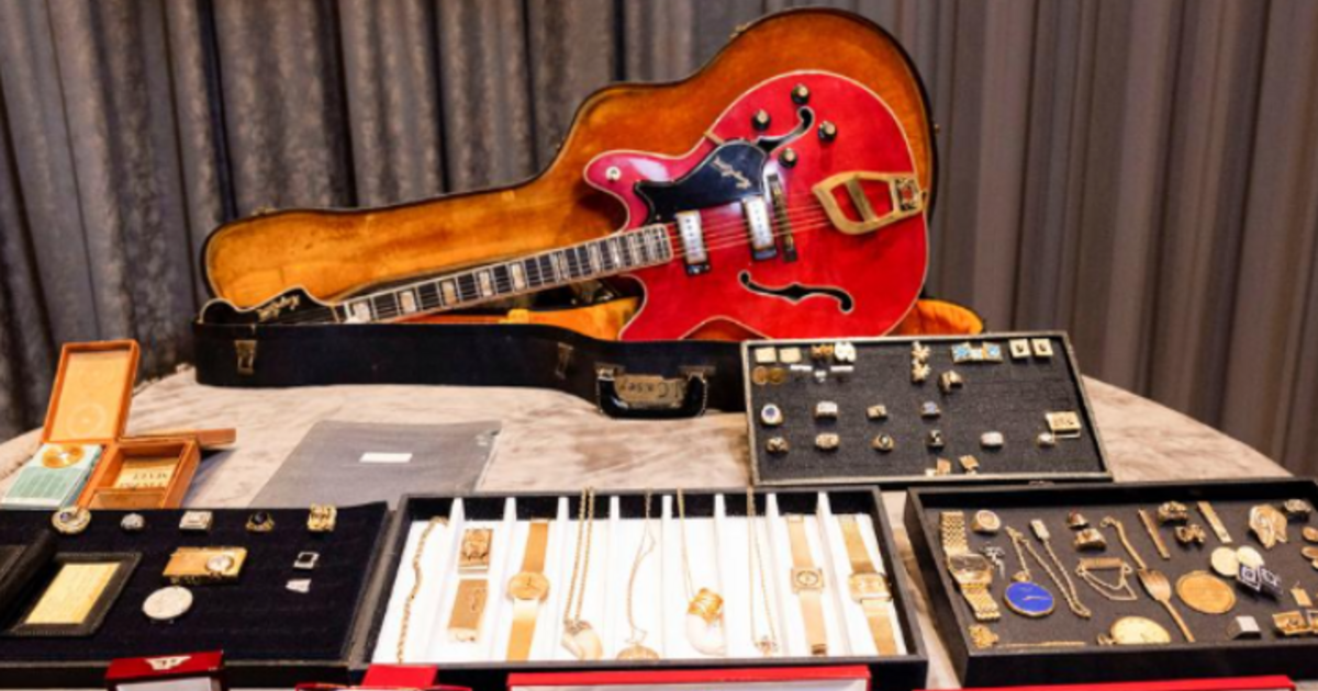 Τα σχεδόν 40 αντικείμενα του Πρίσλεϊ περιλαμβάνουν ένα μπουφάν του ίδιου σχεδιαστή που είχε σχεδιάσει την εμβληματική λευκή ολόσωμη φόρμα και την κάπα του βασιλιά της ροκ, έναν αγαπημένο του χαρτοφύλακα και μια ατζέντα με τον γραφικό του χαρακτήρα, τα οποία αναμένεται να πωληθούν πάνω από 9 χιλιάδες ευρώ.