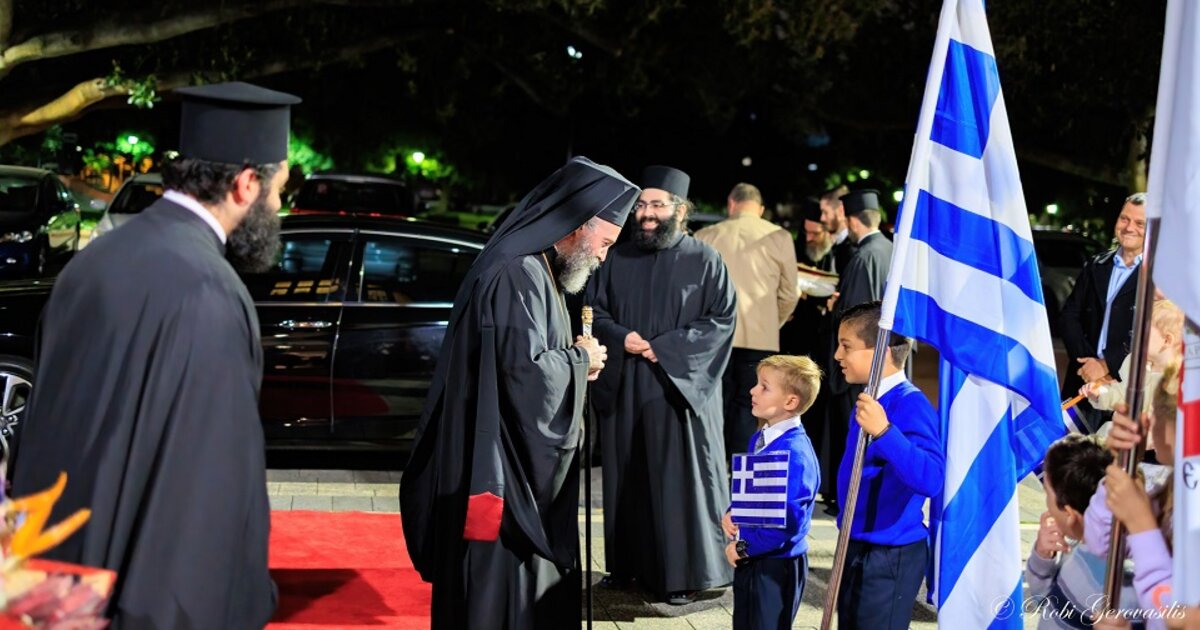 Νωρίτερα, τον Αρχιεπίσκοπο κ.κ. Μακάριο υποδέχθηκαν θερμά, στην είσοδο του Ιερού Ναού παιδιά, της Ενορίας και μαθητές του Κολλεγίου του Αγίου Ανδρέου.