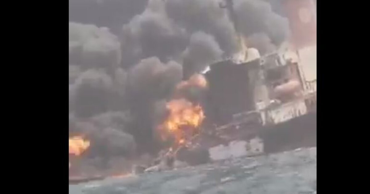 Συγκλονιστικές εικόνες με φλεγόμενο τάνκερ στη θάλασσα