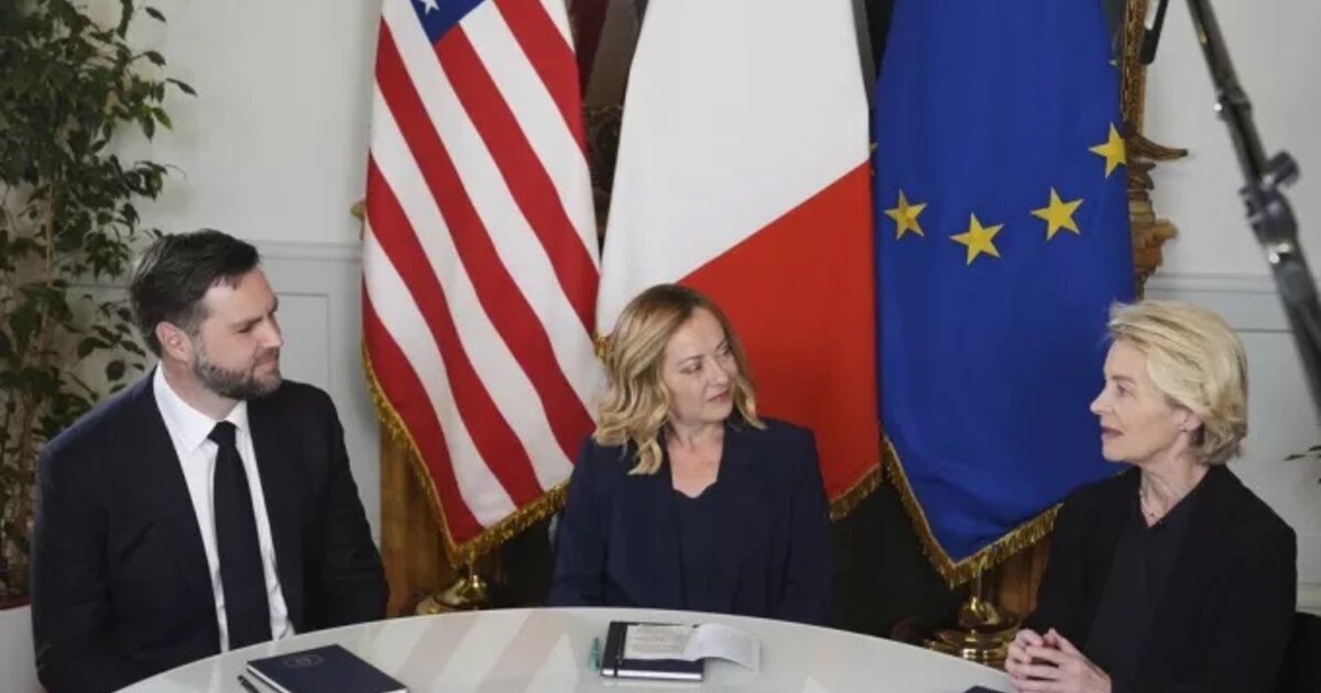 Ο Αντιπρόεδρος των Ηνωμένων Πολιτειών, Τζέι Ντι Βανς, συναντήθηκε την Κυριακή με την πρόεδρο της Ευρωπαϊκής Επιτροπής, Ούρσουλα φον ντερ Λάιεν, και την Ιταλίδα Πρωθυπουργό Τζόρτζια Μελόνι, εκφράζοντας την ελπίδα ότι η συνάντηση θα συμβάλει στην προώθηση των εμπορικών συνομιλιών μεταξύ Ευρωπαϊκής Ένωσης και ΗΠΑ.