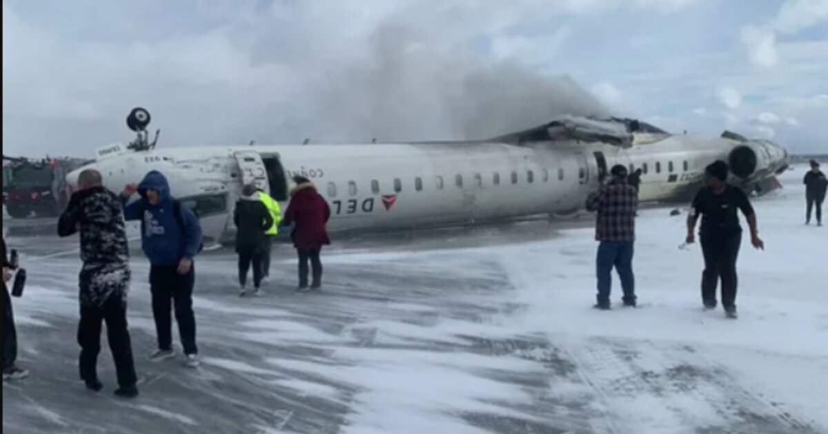 Η καναδική τηλεόραση μετέδωσε βίντεο στο οποίο διακρίνεται το αεροσκάφος της Delta αναποδογυρισμένο στη χιονισμένη πίστα του διεθνούς αεροδρομίου Πίρσον.