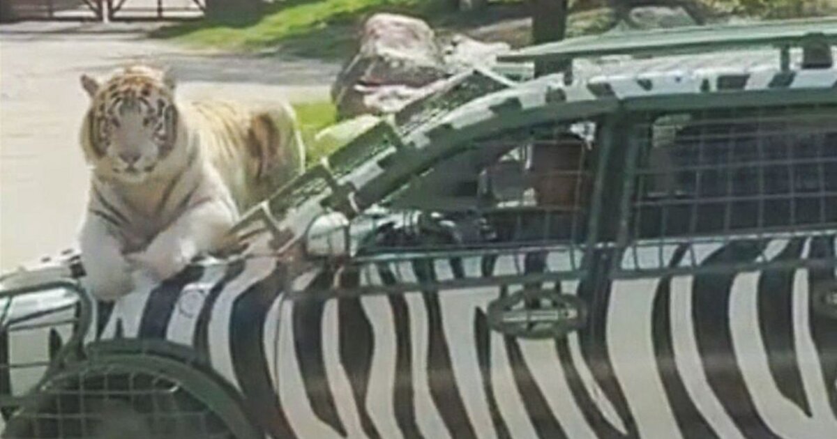 Πανέμορφη και ...τεράστια τίγρης βρέθηκε σε απόσταση αναπνοής από τουρίστες που επισκέπτονταν το πάρκο σαφάρι της επαρχίας Χενάν στην Κίνα.