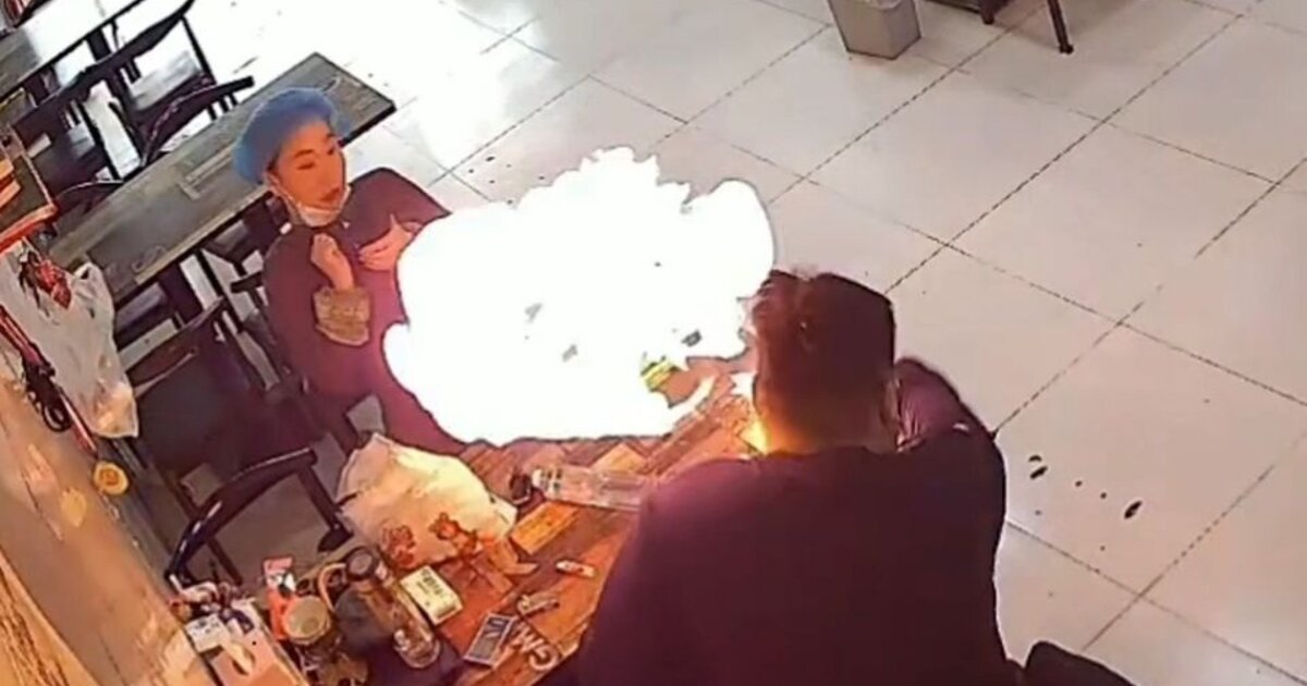 Ένα απίστευτο ατύχημα κατέγραψε κάμερα σε εστιατόριο στην πόλη Ζίμπο της Κίνας, στις 14 Μαρτίου.