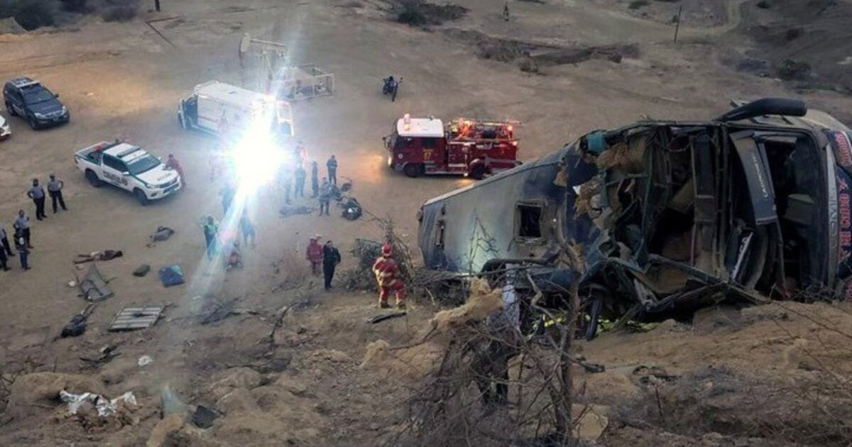 Το διώροφο λεωφορείο, που εκτελούσε δρομολόγιο από την πρωτεύουσα Λίμα με προορισμό το Αγιακούτσο, εξετράπη της πορείας του κι έπεσε σε γκρεμό ύψους περίπου εκατό μέτρων με την οροφή.