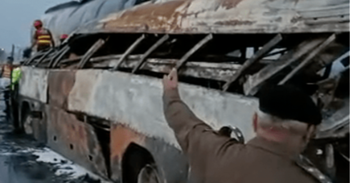 Το λεωφορείο που πραγματοποιούσε μακρύ ταξίδι προσέκρουσε στο πίσω μέρος του βυτιοφόρου, στο σκοτάδι, στην περιφέρεια της πόλης Μουλτάν.