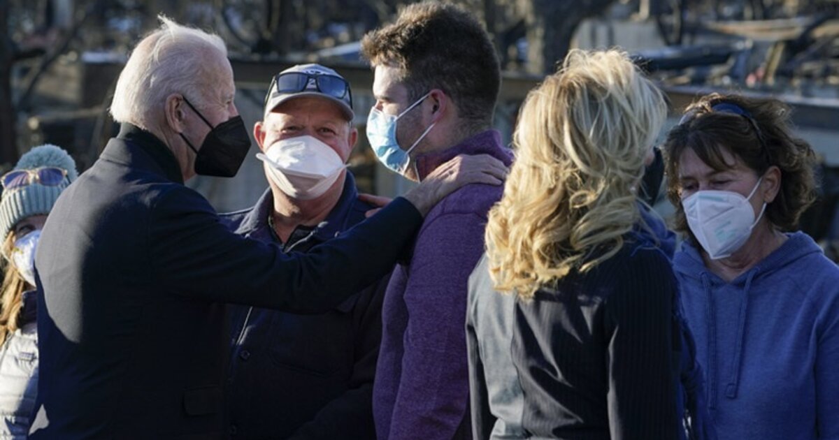 President Joe Biden and first lady Jill Biden met with first responders and families whose neighborhoods were destroyed by the Marshall Fire in Louisville, Colorado.