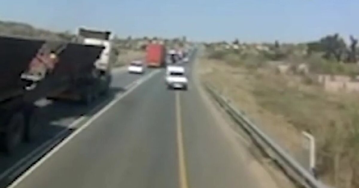Το φορτηγό φαίνεται να επιχειρεί προσπέραση 15 οχημάτων μπαίνοντας στο αντίθετο ρεύμα κυκλοφορίας