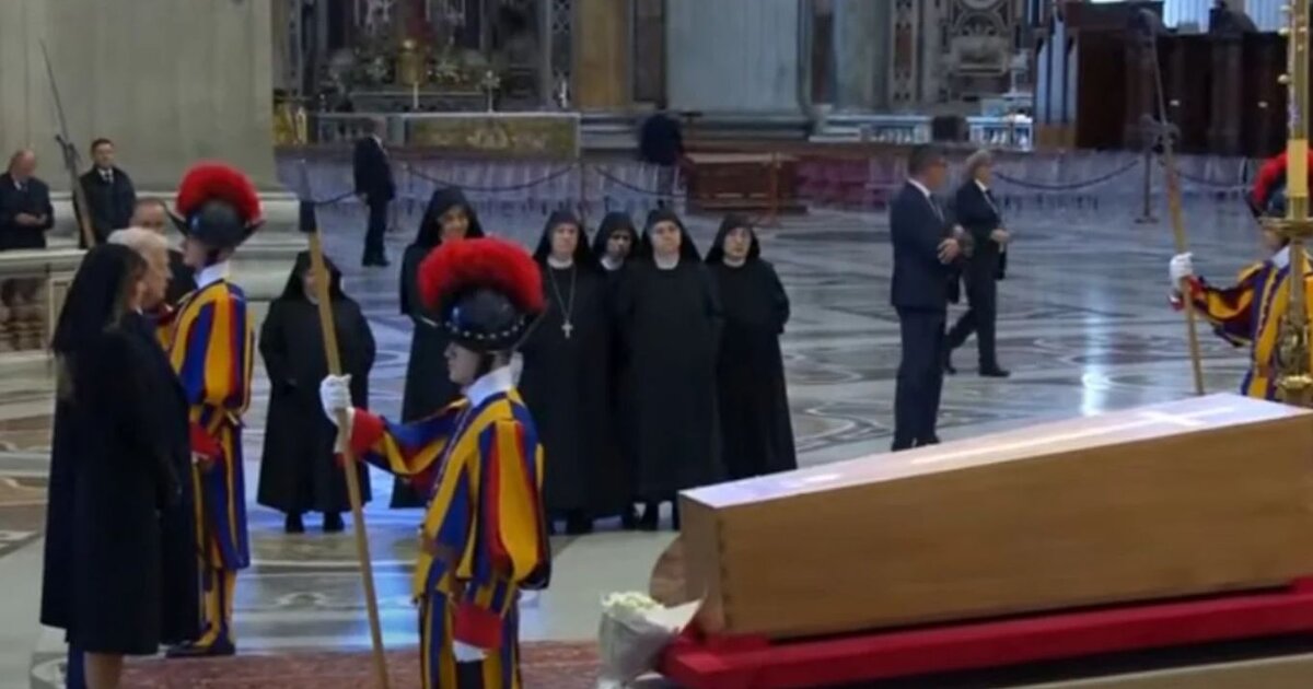 Ο πρόεδρος των ΗΠΑ Ντόναλντ Τραμπ και η σύζυγός του Μελάνια εισήλθαν στη Βασιλική του Αγίου Πέτρου για μια στιγμή μπροστά από το φέρετρο του Πάπα Φραγκίσκου πριν από την κηδεία.