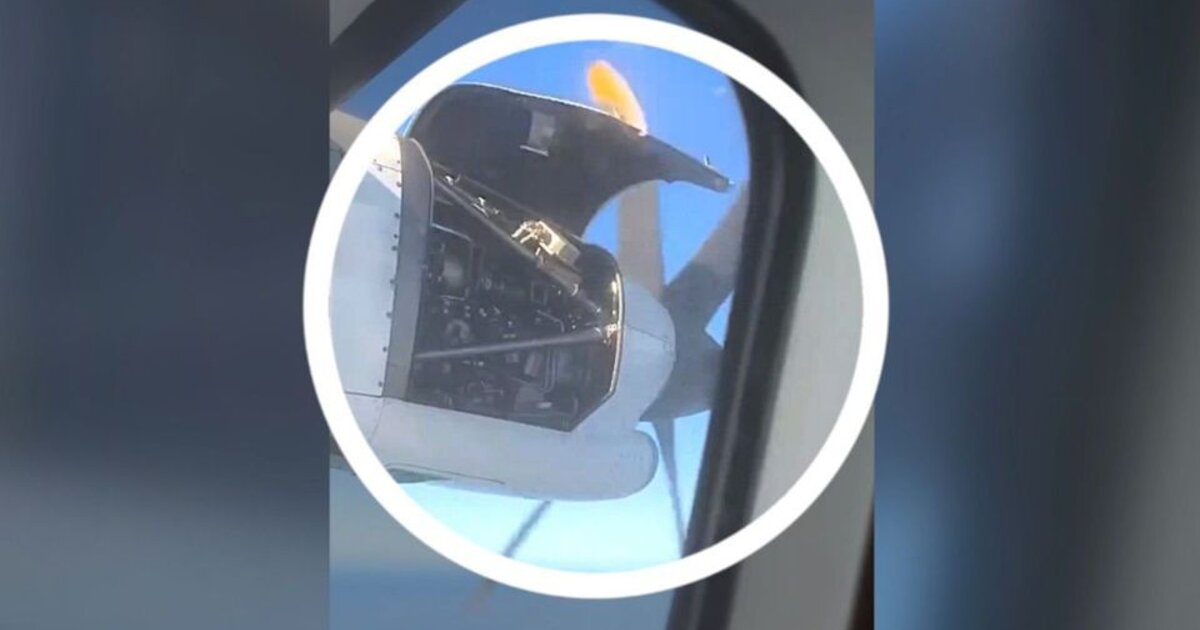 Κοιτάζοντας έξω από τα παράθυρα τους συνειδητοποίησαν ότι το κάλυμμα της μιας ελικοφόρου μηχανής είχε αποκολληθεί και ο έλικας είχε χαλαρώσει.