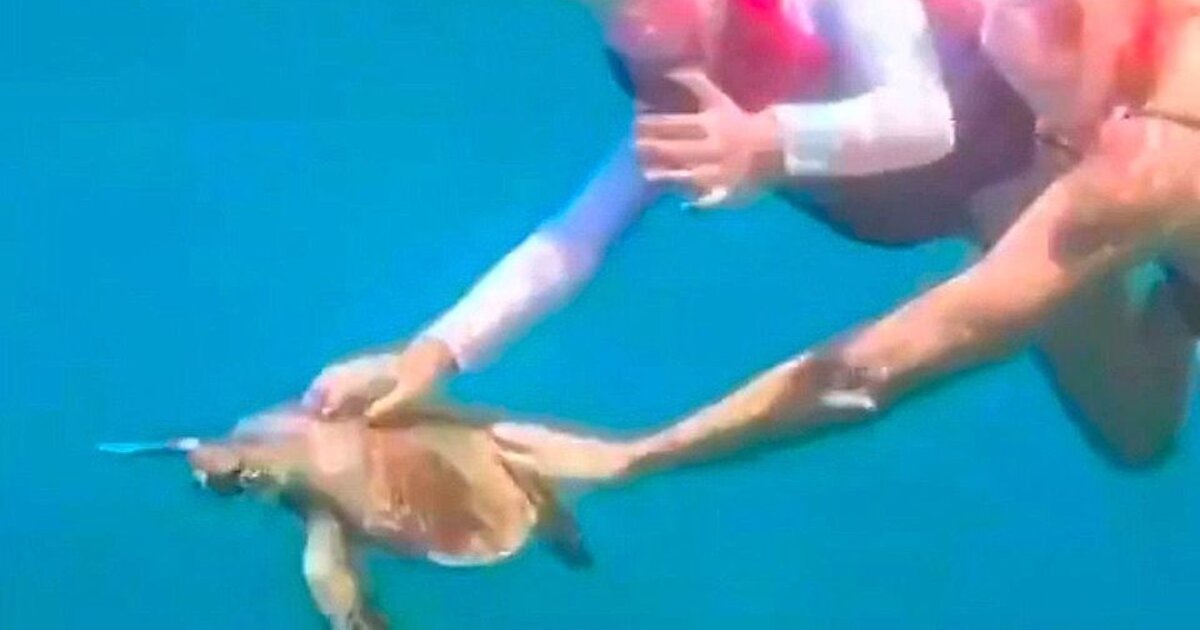 Η οικογένεια χάιδεψε χελώνα υπό εξαφάνιση και το Ινστιτούτο Διατήρησης Βιοποικιλότητας Τσίκο Μέντεζ εξέδωσε πρόστιμο 1580 ευρώ για παραβίαση των νόμων προστασίας της άγριας ζωής.