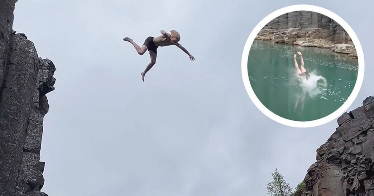 Μάλλον ελαφρόμυαλος αλλά εξαιρετικά τυχερός, ένας ριψοκίνδυνος άνδρας αποφάσισε να κάνει μια απίστευτη βουτιά από βράχια σε μεγάλο ύψος, στην Ισλανδική πόλη Εγγιλστάιρ, στις 18 Ιουλίου.