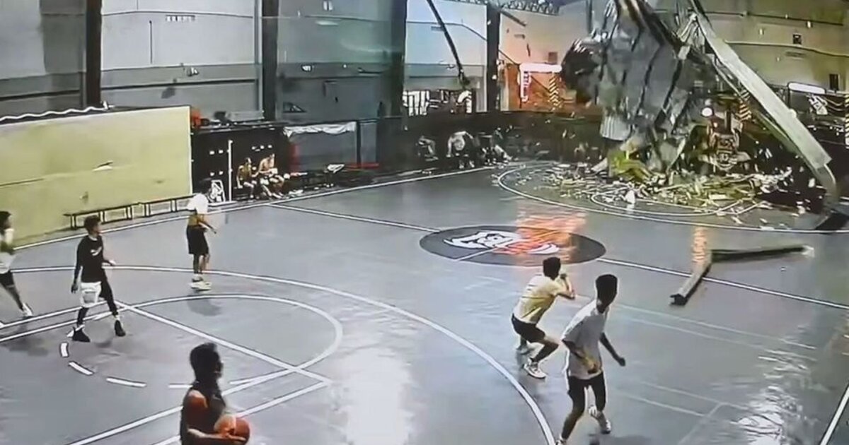 Τυχεροί παίκτες μπάσκετ γλυτώνουν από κατέρρευση στέγης εν μέσω τυφώνα