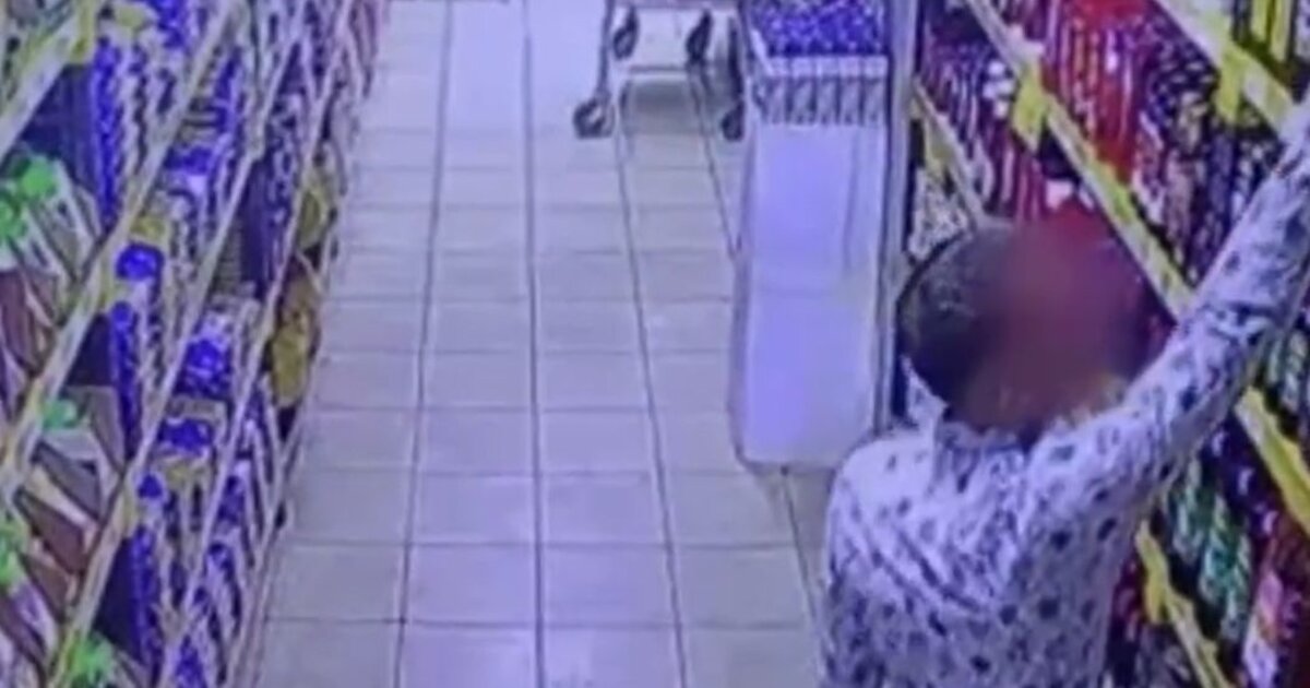 Στο βίντεο από κάμερα ασφαλείας φαίνεται ο άνδρας να κρύβει και τα δύο μπουκάλια στο παντελόνι του.