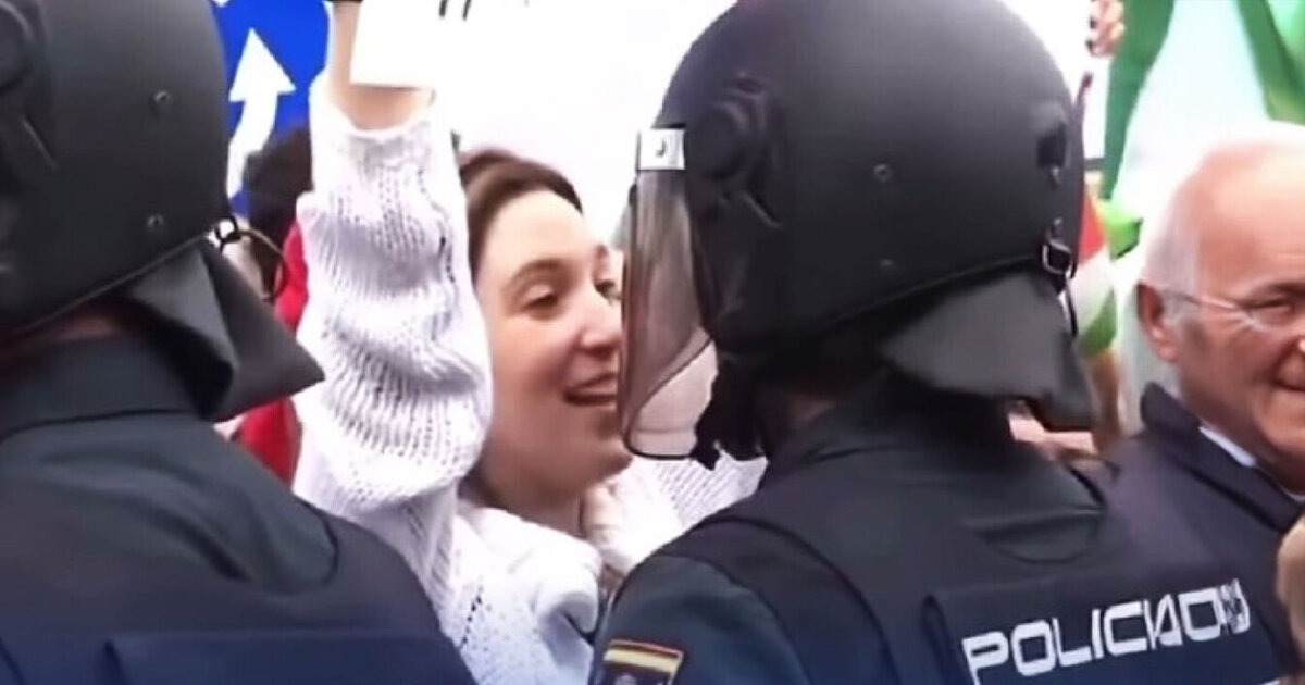 Ένα βίντεο που δείχνει την ασυνήθιστη αλληλεπίδραση μιας διαδηλώτριας με έναν αστυνομικό σε πορεία υπέρ των Παλαιστινίων στην Ισπανία έχει γίνει viral τα τελευταία 24ωρα.