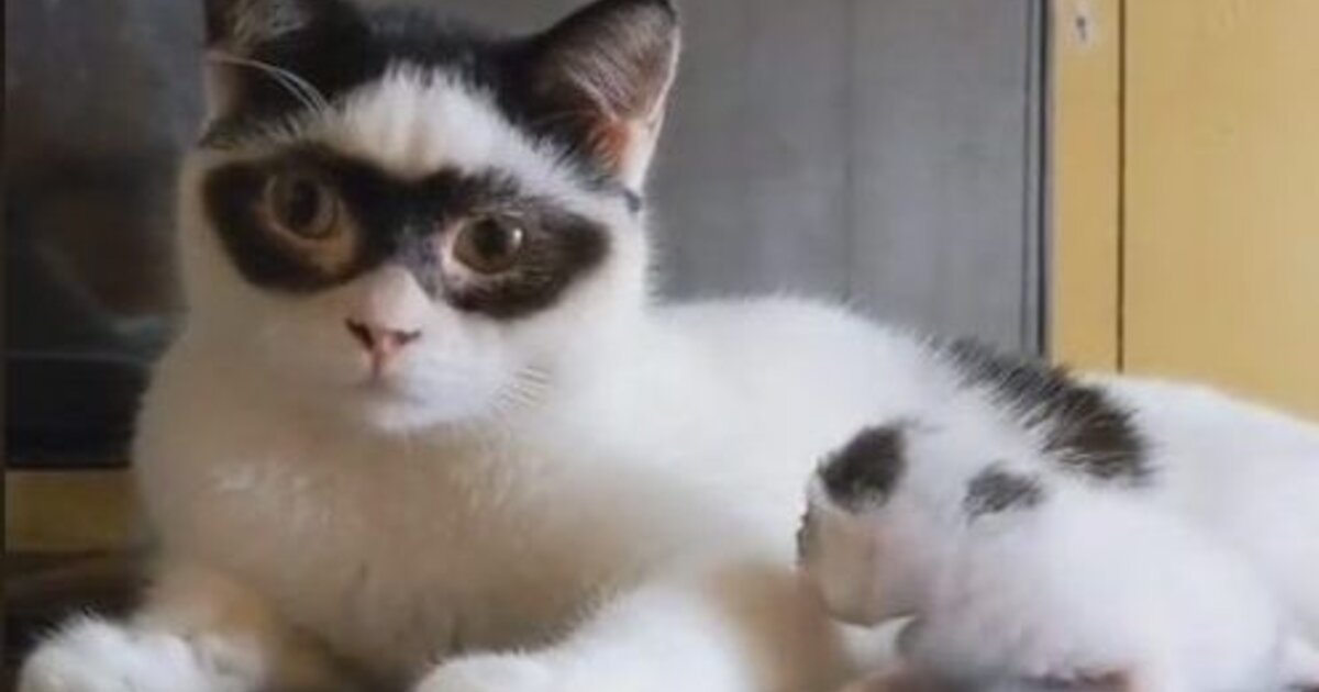 Και προσθέτει: «Έχω πολλές γάτες αλλά αυτός είναι ο μόνος που έχει μάσκα στο πρόσωπό του. Είναι ο αγαπημένος μου».