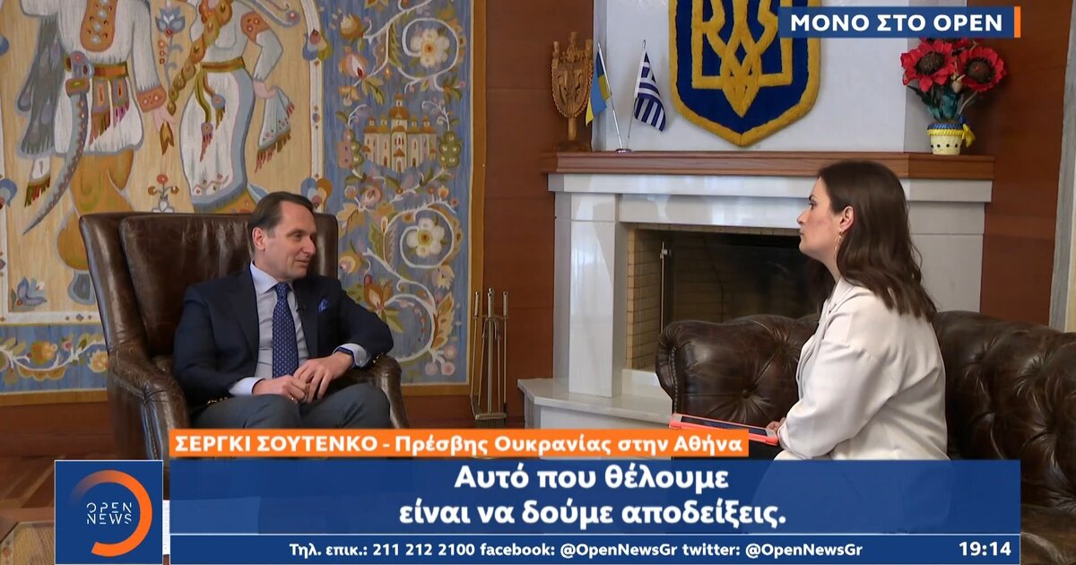 Αποδείξεις από τη Ρωσία ότι πράγματι απομάκρυνε τα στρατεύματά της, ζητάει ο Ουκρανός πρέσβης στην Αθήνα, Σέργκι Σουτένκο, μιλώντας στο κεντρικό δελτίο ειδήσεων του ΟΡΕΝ.