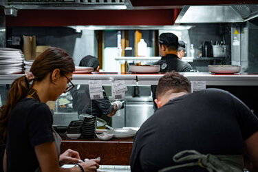 Αυτή η σιωπηλή διαδικασία καθημερινής αριστοποίησης λειτούργησε ως σημείο αναφοράς και για την υπόλοιπη ομάδα. Έτσι, ο πάγκος του Wasabe δεν έγινε απλώς χώρος παραγωγής γεύσεων, αλλά και μετάδοσης γνώσης, εμπειρίας και φιλοσοφίας.